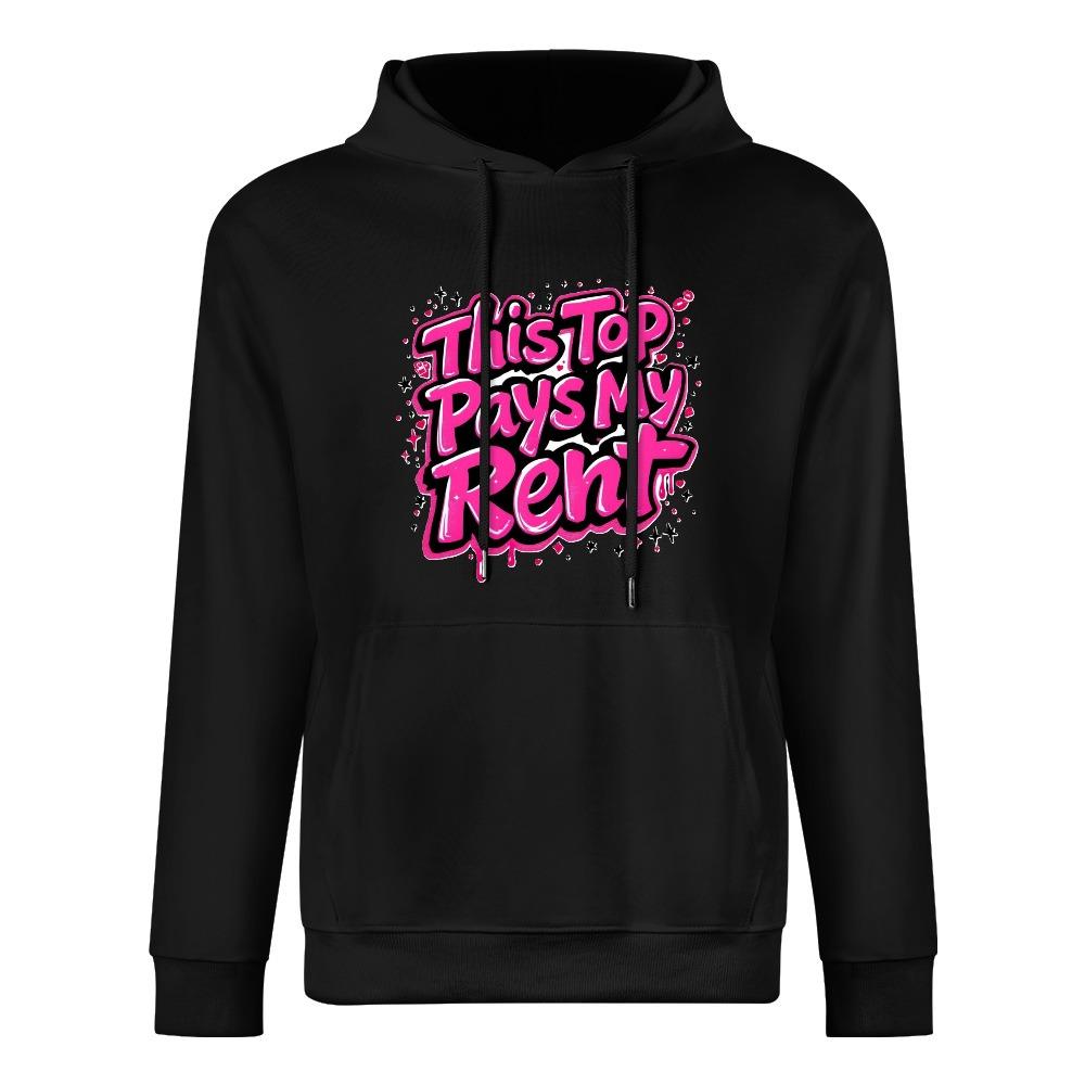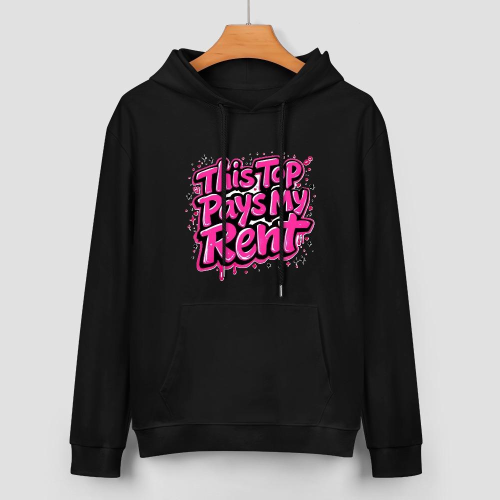 Be the first to review “This Top Pays My Rent Hoodie – Black Hoodie with Bold Pink Hustle Graphic”