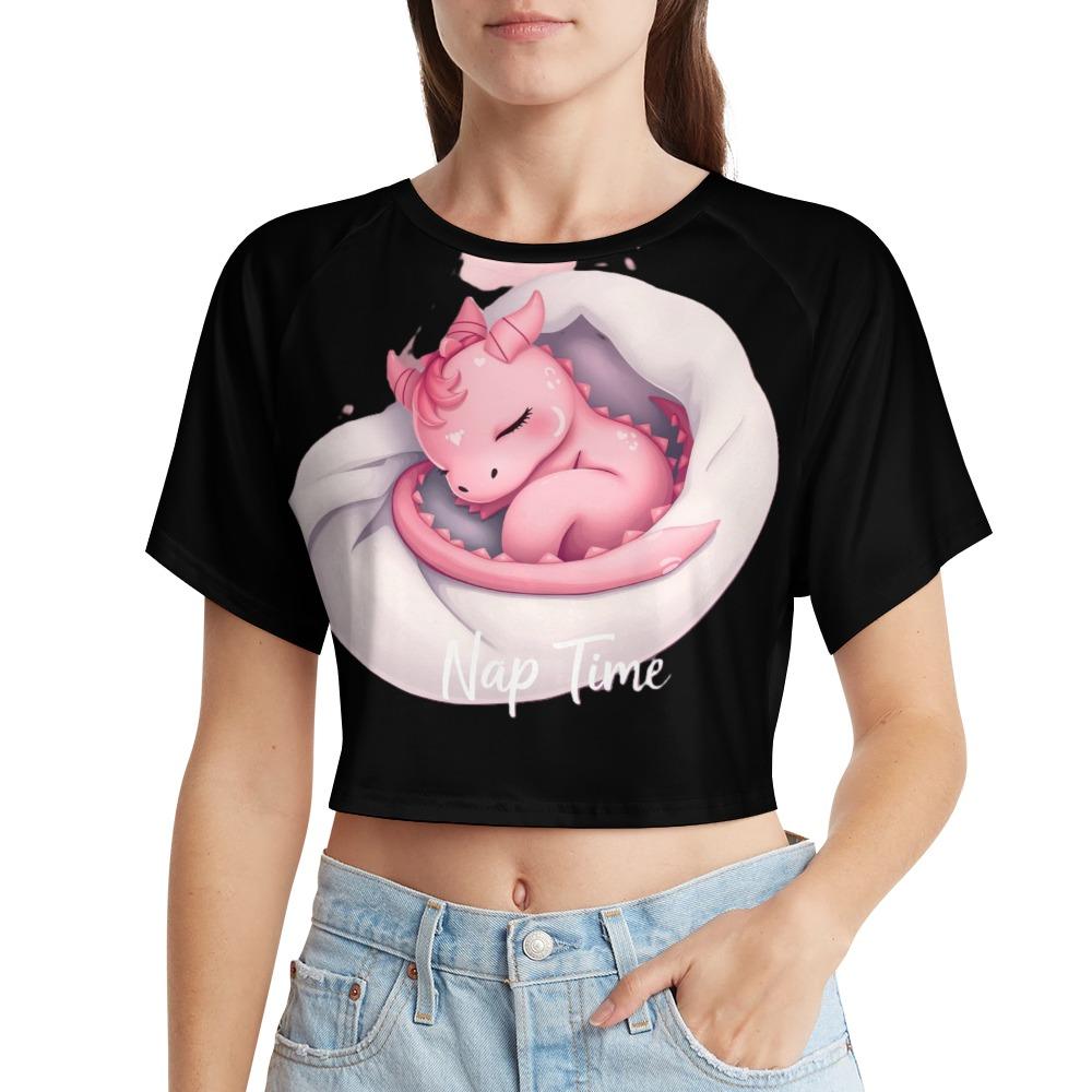 💤Nap Time Pink Dragon Crop Top – First Kiss Butterflies Collection