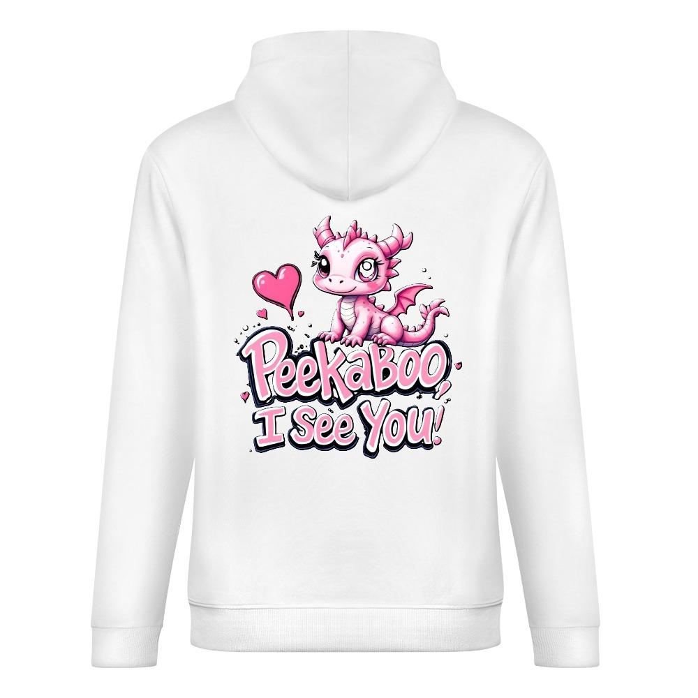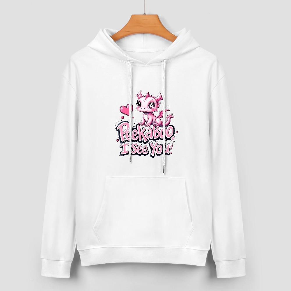 The Peekaboo I See You Hoodie brings sweet sass and flirty fun to your fit. Featuring a wide-eyed pink cartoon deer peeking out with a cheeky “Peekaboo, I See You!” message, this hoodie is made to turn heads and spark smiles. With its soft white base, cozy front pocket, and bold graphic pop, it’s perfect for playful hearts who love cute style with a wink. Whether you’re lounging or stepping out, this hoodie says it loud: you’re seen — and you’re adorable.【 Material description 】