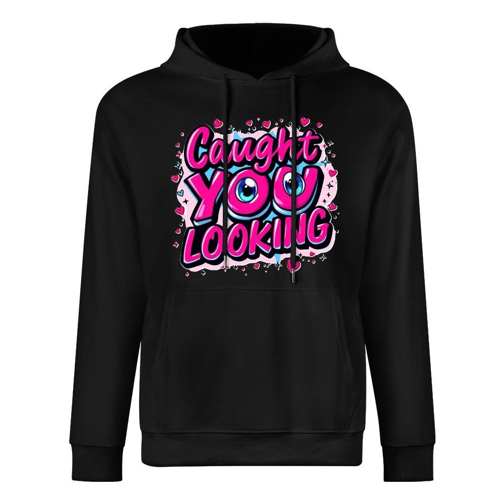 Be the first to review “Caught You Looking Hoodie – Black Hoodie with Flirty Bubble Lettering and Cartoon Eyes”