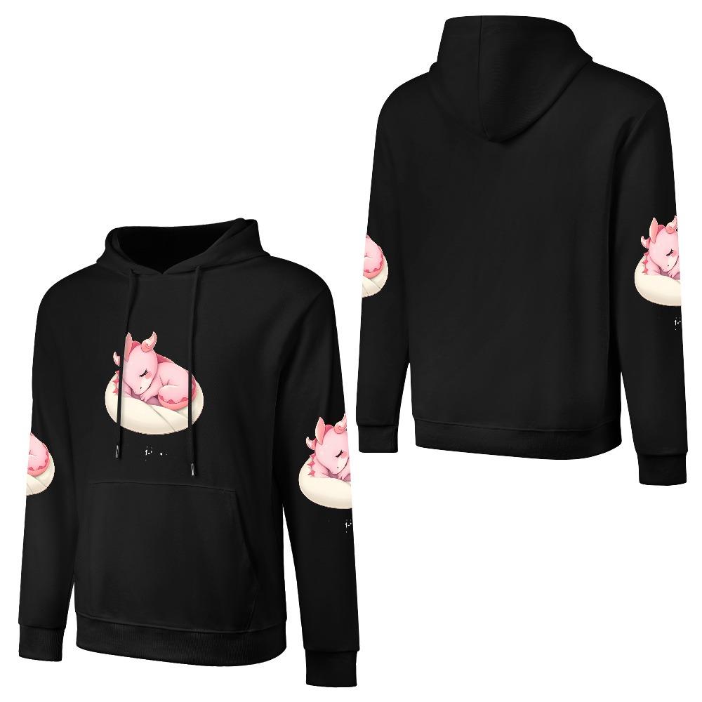 Nap Time Dragon Hoodie – Black Hoodie with Sleeping Pink Dragon and Pillow Sleeve Prints