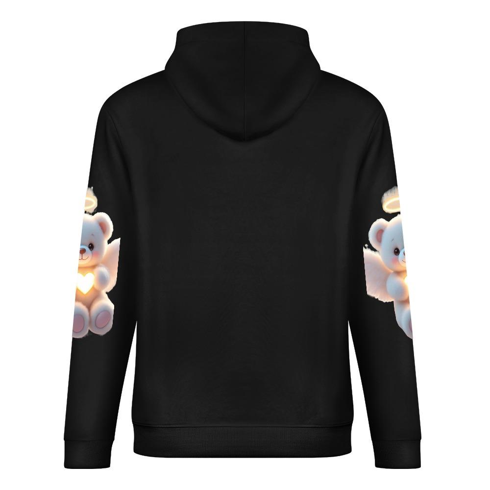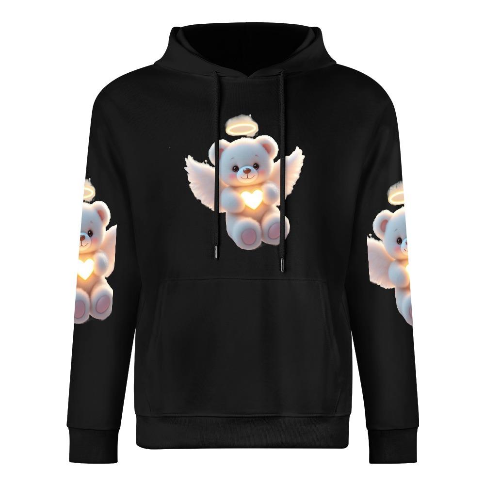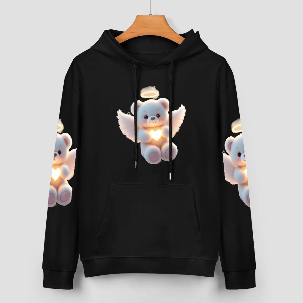 Angel Heart Bear Hoodie – Black Hoodie with Halo Teddy and Glowing Chest Heart