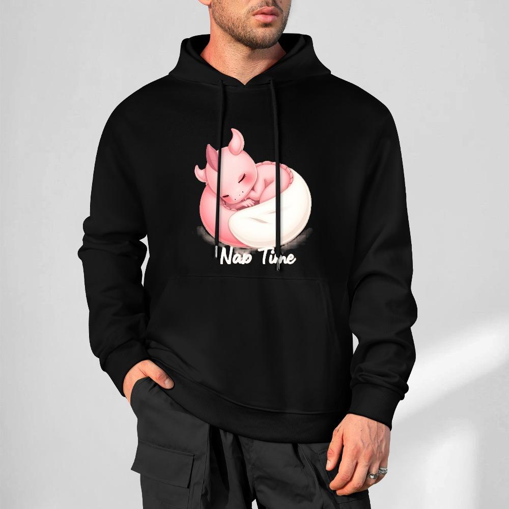 The Nap Time Dragon Hoodie is your go-to for cozy vibes and mythical cuteness. Featuring a soft pink dragon curled up with tiny horns and wings, sleeping soundly atop a white pillow, this black hoodie is a dream come true for fantasy lovers. Whether you’re curled up in bed or out catching Z’s on the go, this hoodie adds a touch of magic to your chill wardrobe.【 Material description 】