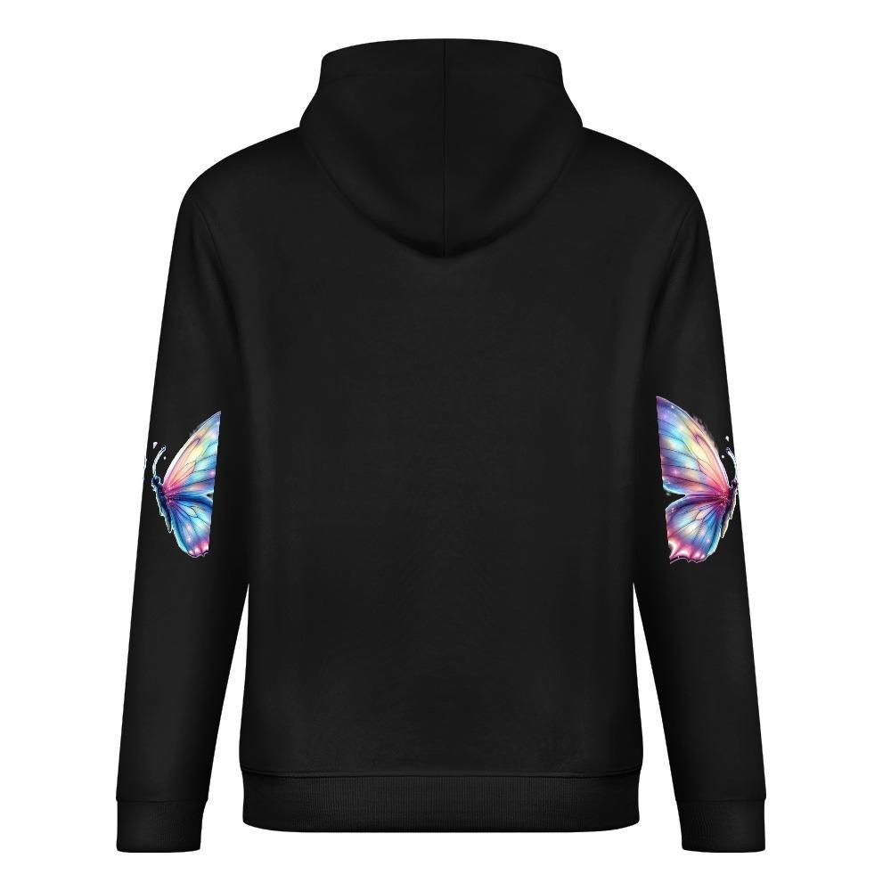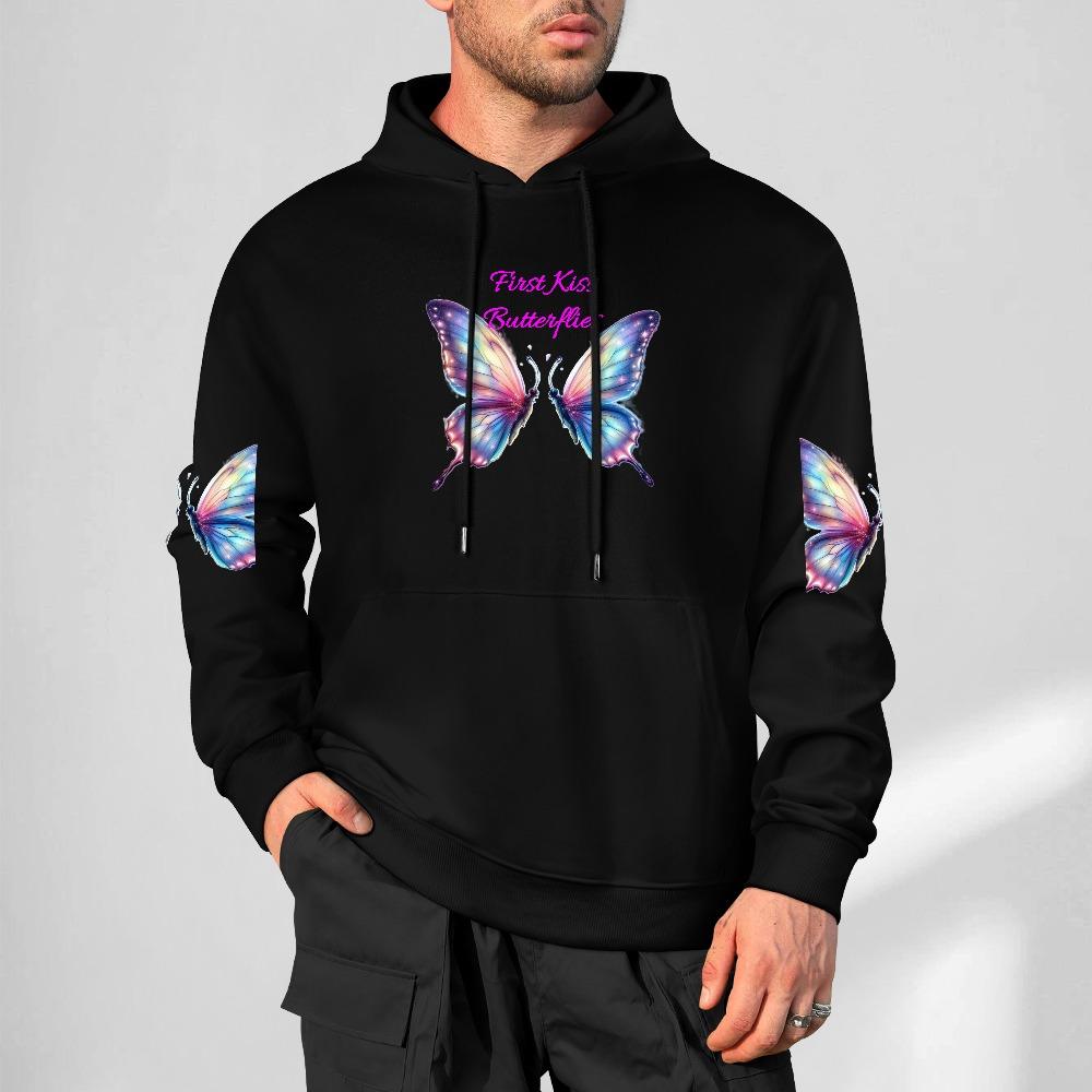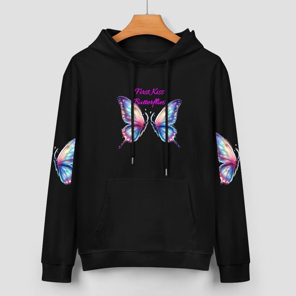 First Kiss Butterflies Hoodie – Black Hoodie with Pastel Butterfly Back Print and Sleeve Graphics