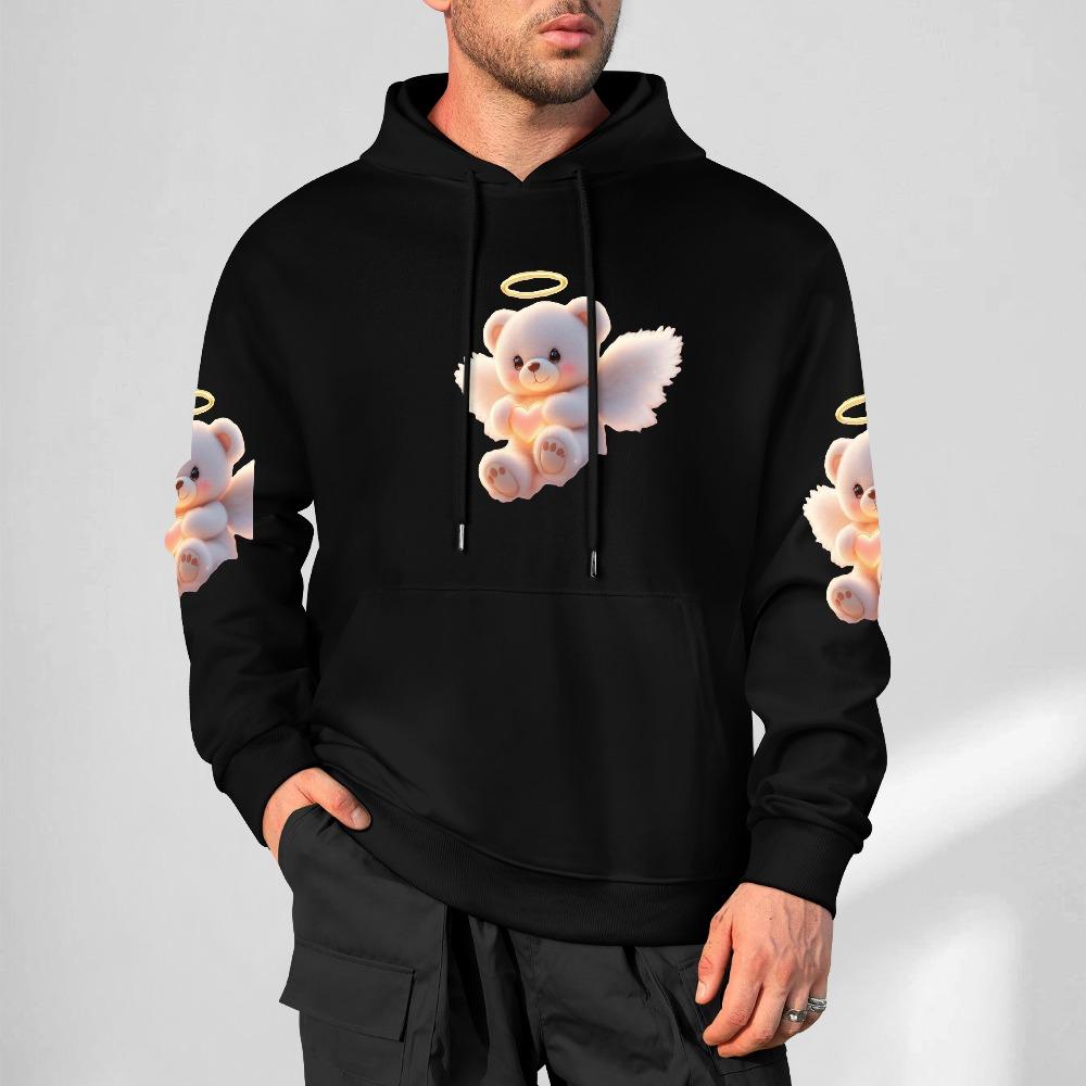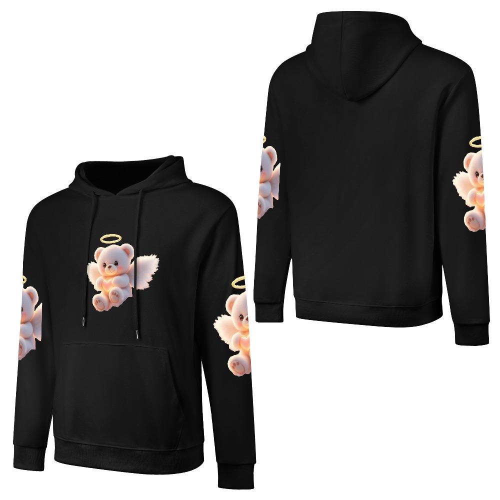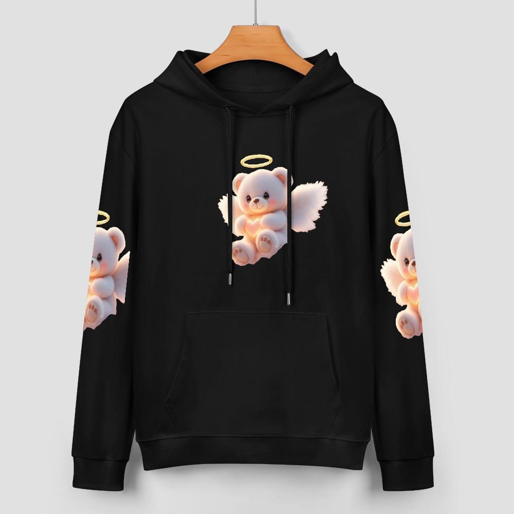 Angel Bear Hoodie – Black Hoodie with Halo Teddy Bear and Wing Sleeve Prints