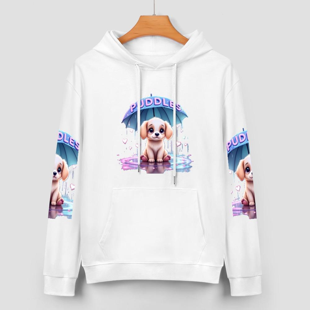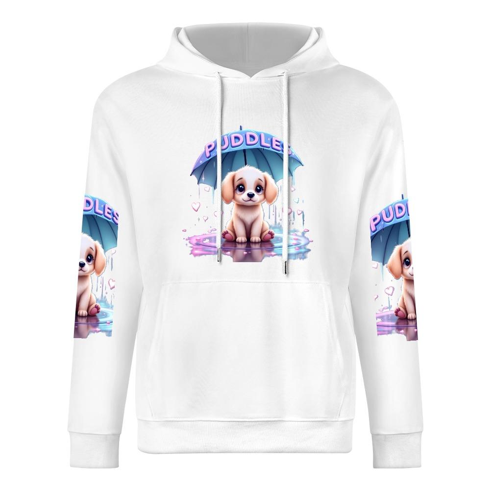 Stay cozy and turn heads with the Puddle Pup Hoodie – a heart-melting design featuring an adorable puppy sitting under an umbrella in a pastel puddle. This soft white hoodie blends comfort with playful charm, making it perfect for dog lovers, rainy-day dreamers, and anyone who adores cute graphic fashion. With vibrant full-print art on the front and sleeves, it’s a must-have for cozy vibes and everyday smiles.