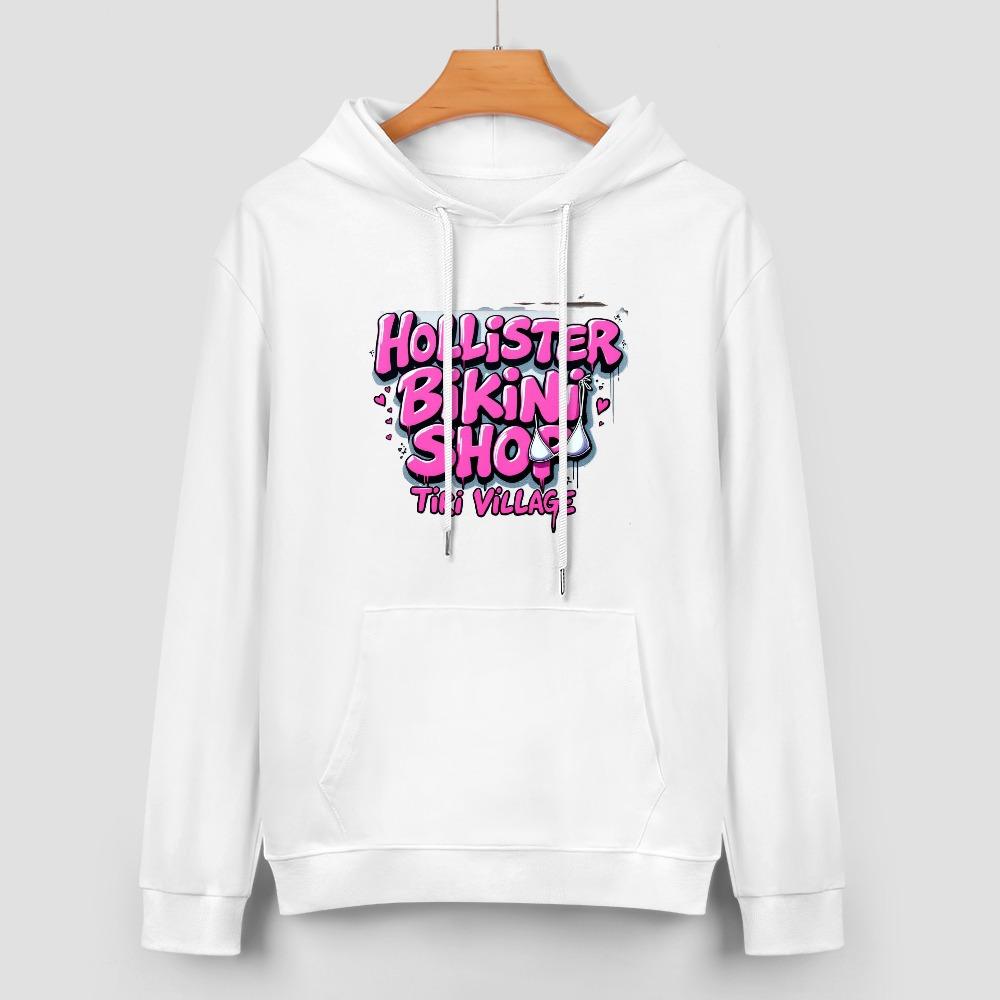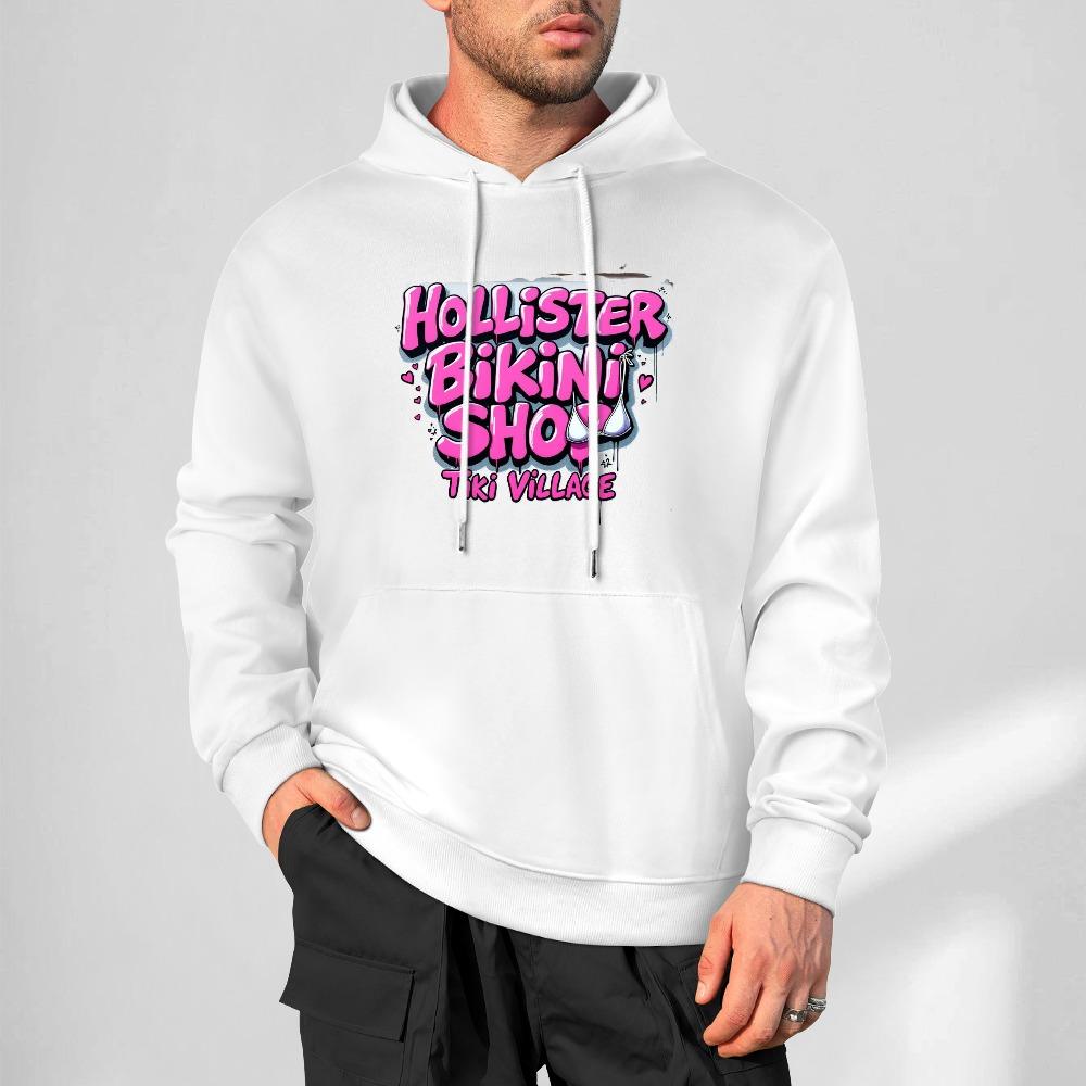 The Hollister Bikini Shop Hoodie – Tiki Village Edition brings the heat with a tropical twist. Featuring bold pink and black graffiti-style lettering and the tagline “Tiki Village” underneath, this hoodie captures the sun-kissed, flirty energy of a beachside boardwalk with attitude. Whether you’re chasing waves or just chasing stares, this pullover is perfect for girls who don’t do quiet — they do cute, loud.【 Material description 】