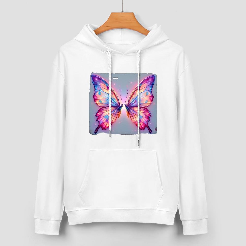 Be the first to review “Dreamcore Butterfly Glow Hoodie – Radiant Pink and Purple Wings Hoodie on Soft White”