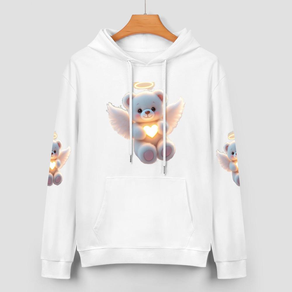 Glow Heart Angel Bear Hoodie – Soft White Hoodie with Wings, Halo & Glowing Chest Graphic