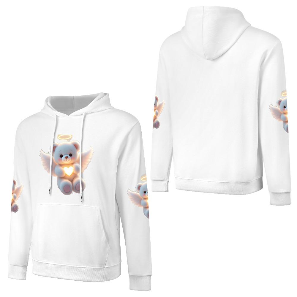 The Glow Heart Angel Bear Hoodie is a heavenly hug you can wear. Featuring an adorable pastel teddy with glowing wings, a golden halo, and a lit-up heart on its chest, this white hoodie brings warmth, innocence, and radiant comfort to every outfit. Mirrored sleeve prints give it that extra “aww” factor. Whether you’re spreading kindness or just need a little light in your day, this hoodie wraps you in angel energy from head to heart.【 Material description 】
