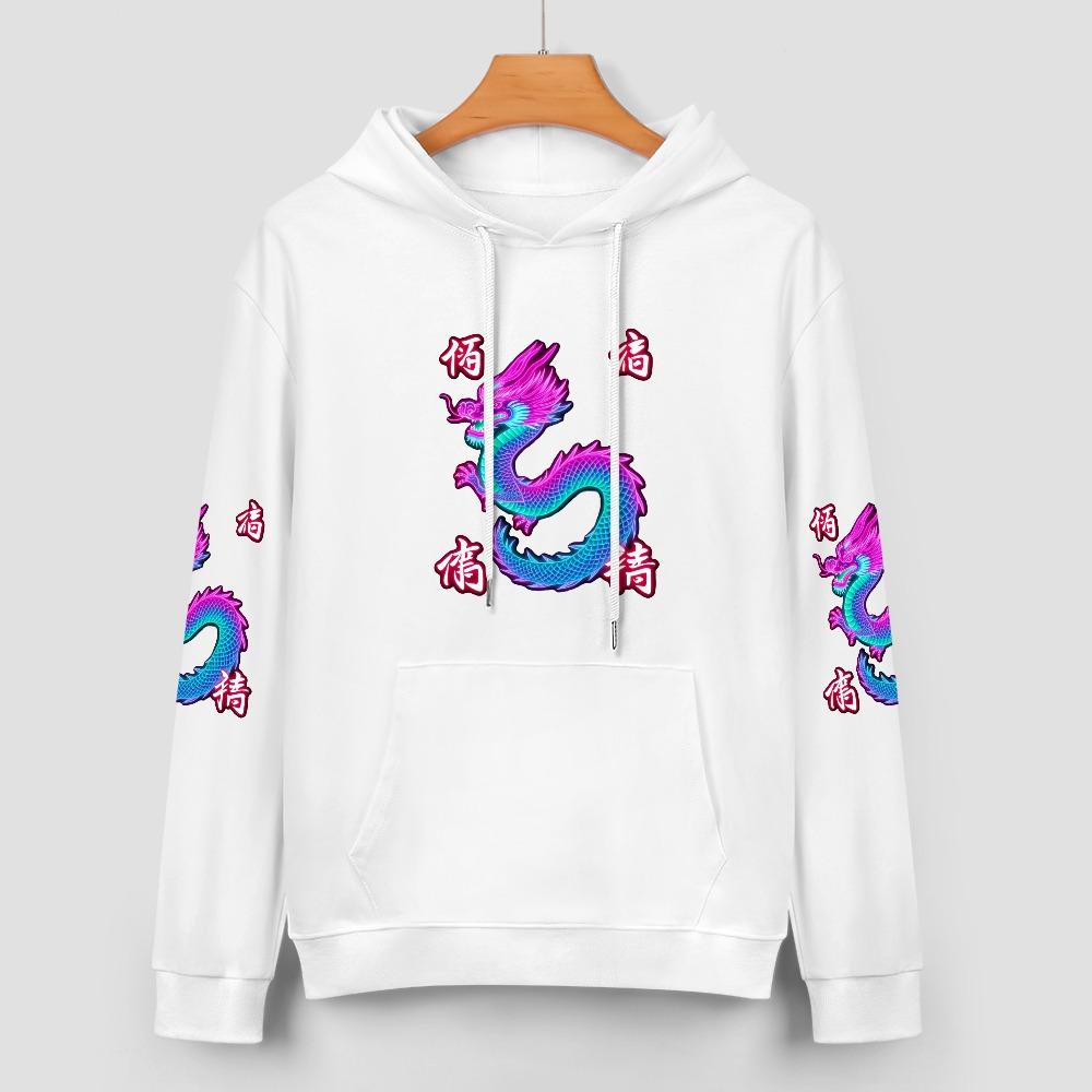 Neon Dragon Hoodie – Tokyo Street Style Hoodie with Blue and Pink Dragon Print