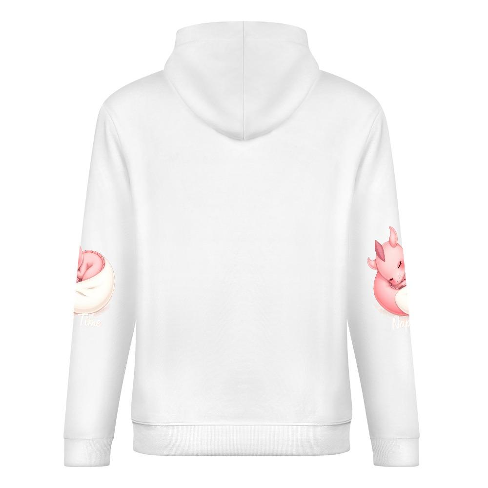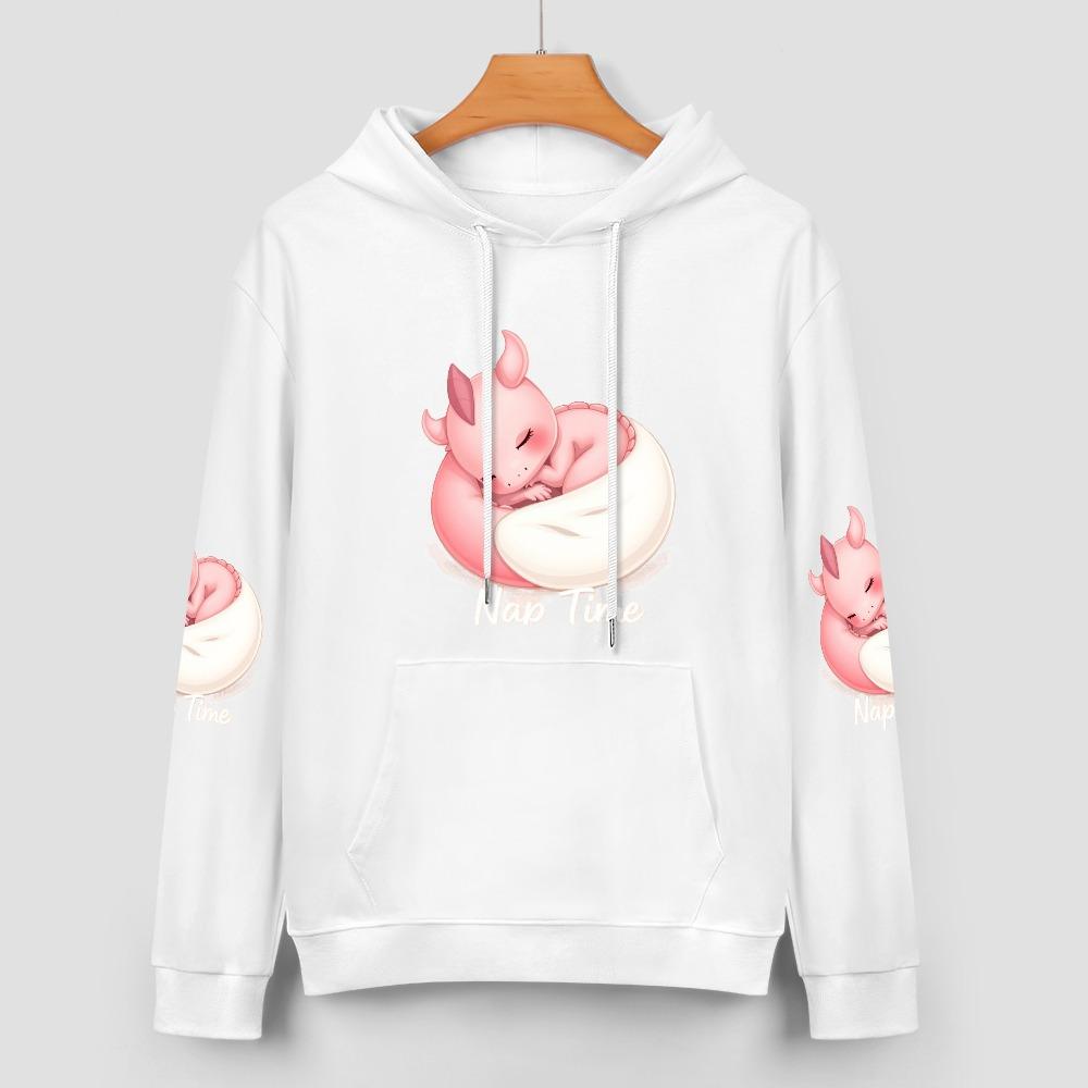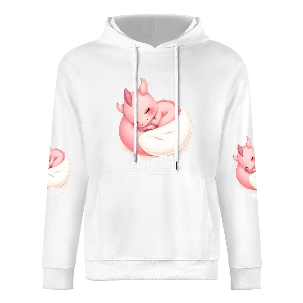 Nap Time Pink Dragon Hoodie – Cute Fantasy Hoodie with Sleeping Dragon Sleeve Print