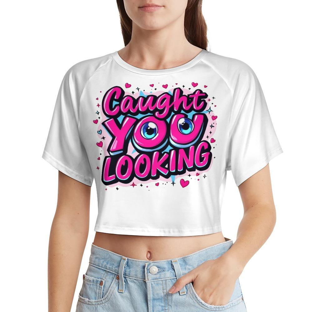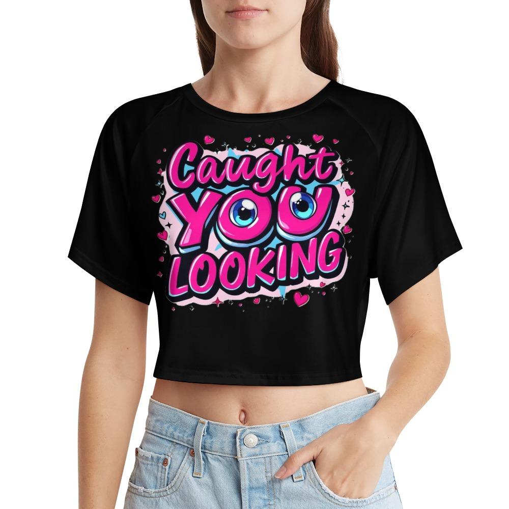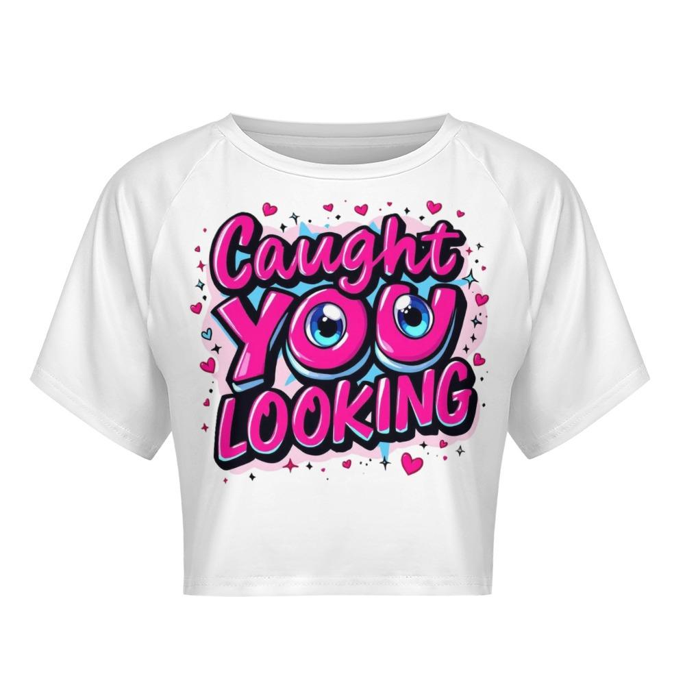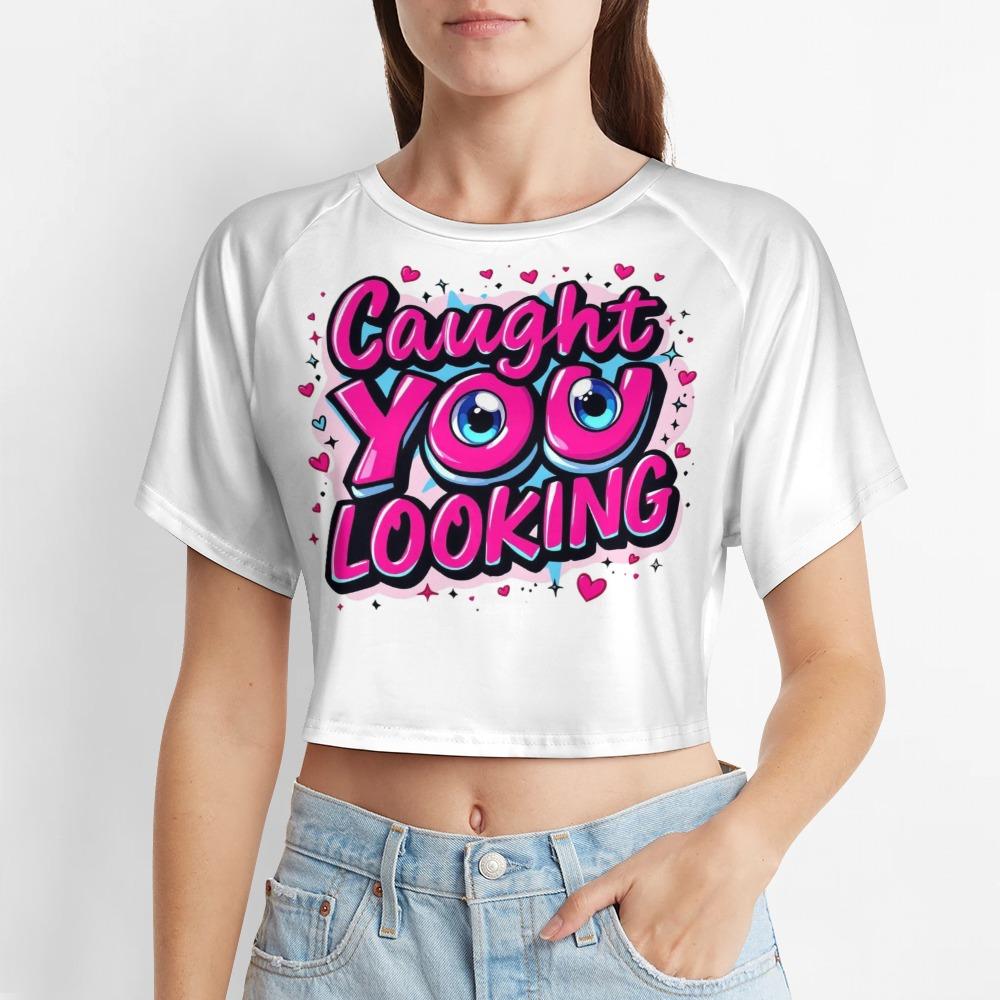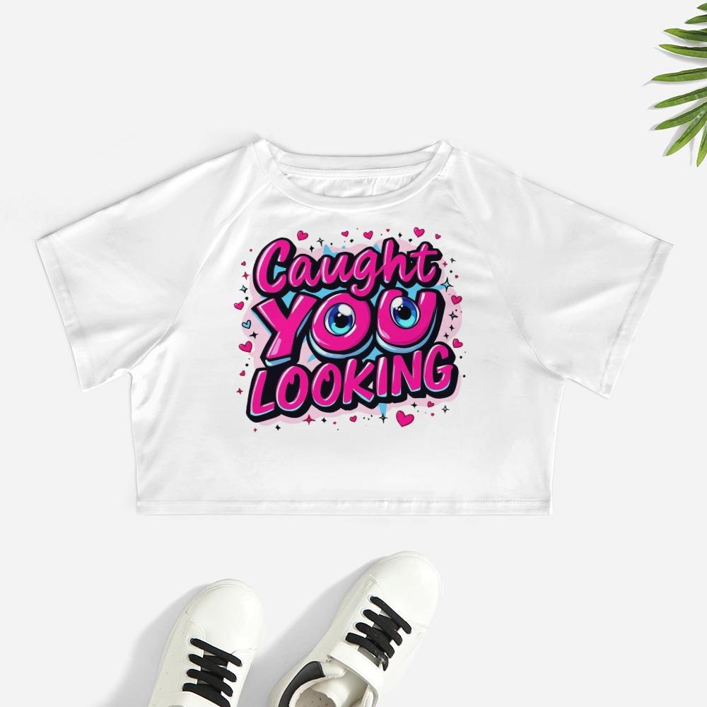 The Caught You Looking Crop Top is made to turn heads and call it out with a wink. Featuring playful pink graffiti lettering and bold cartoon eyes, this flirty top says what you’re already thinking. Fun, cheeky, and a little bratty — it’s perfect for anyone who loves to tease without saying a word. Wear it loud, wear it proud, and don’t be surprised when they look twice.【 Material Description 】