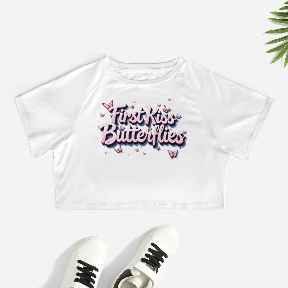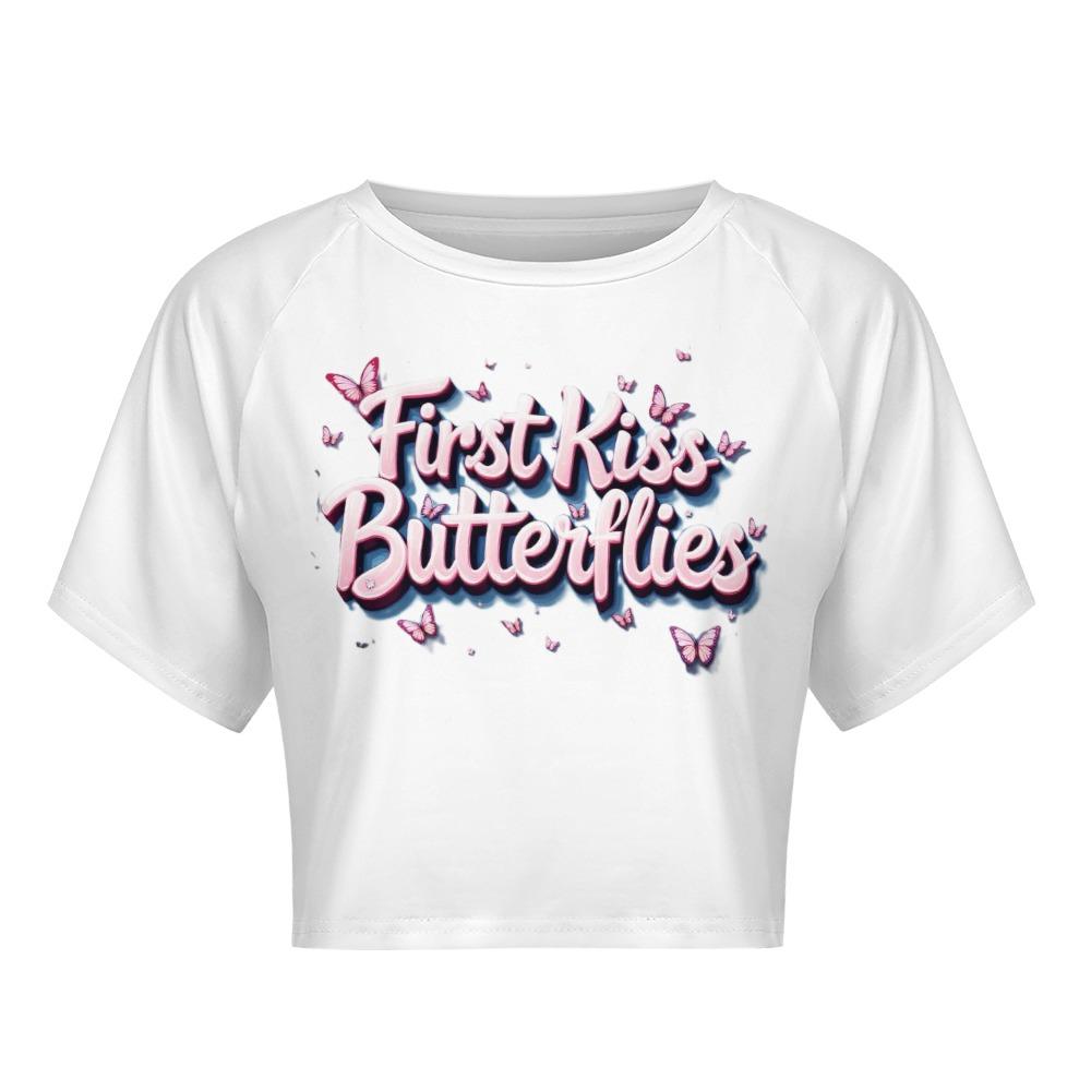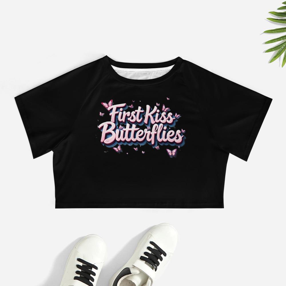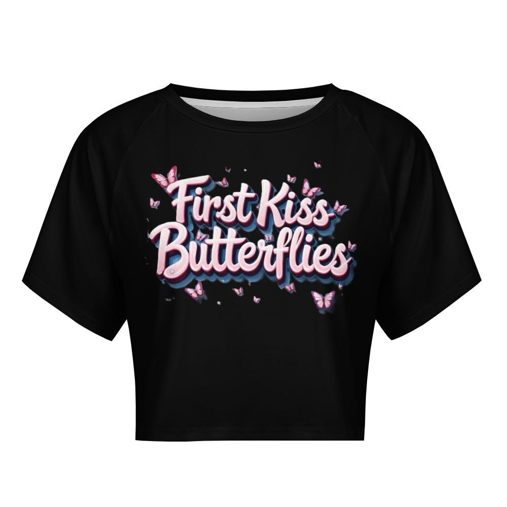First Kiss Butterflies – Deluxe Pink Flutter Crop Tee
