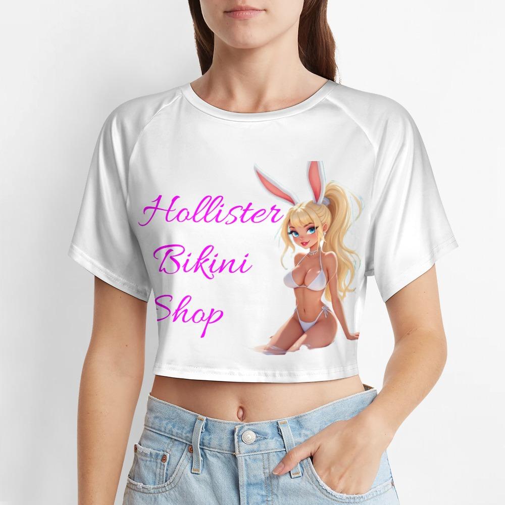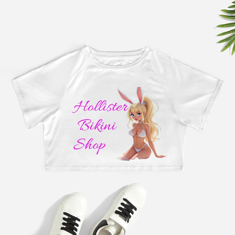 Slip into this beach bunny crop and let the world know you’re not here to blend in. Featuring a dreamy anime-style bombshell with bunny ears and the iconic “Hollister Bikini Shop” text in electric pink, this tee teases just enough and dares them to stare. It’s soft, cheeky, and made to turn heads — whether you’re poolside, in class, or just feeling yourself.