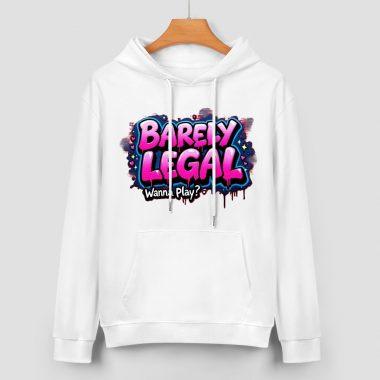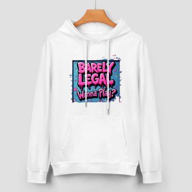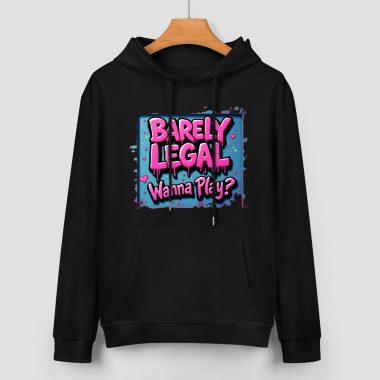 The Barely Legal Hoodie – Wanna Play? Edition is flirty, fearless, and ready to stir things up. With bold bubble lettering in hot pink and electric blue, plus the cheeky phrase “Wanna Play?” underneath, this streetwear-style hoodie doesn’t just start conversations — it owns them. Made for girls who like to push buttons and break…