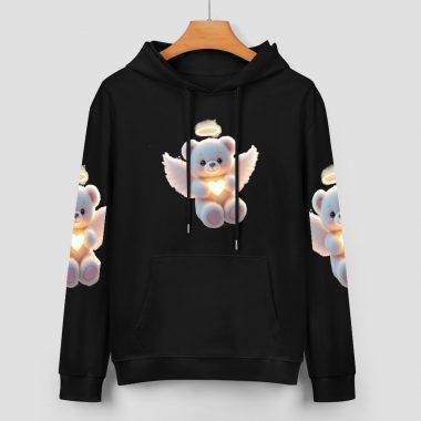 The Angel Bear Hoodie is soft, sweet, and just a little heavenly. Featuring a glowing halo teddy bear with white angel wings on the chest — and matching prints on both sleeves — this black hoodie wraps you in cuddly comfort and quiet charm. Whether you’re lounging, cloud-gazing, or just vibing in your own little…