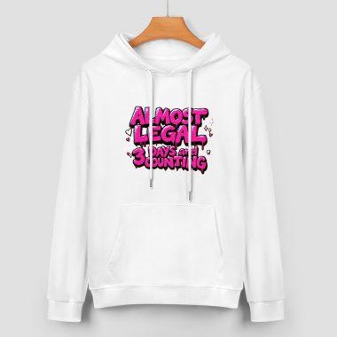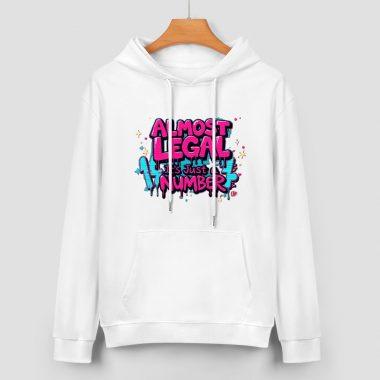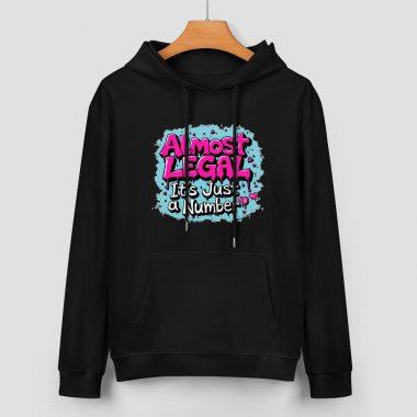 The Almost Legal Hoodie turns heads with its bold pink-and-blue graffiti design that reads “Almost Legal – It’s Just a Number.” This black hoodie leans into edgy streetwear vibes with a playful twist, made for those who love pushing limits and making statements. Perfect for confident teens with a rebellious streak and a cheeky sense…