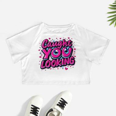 The Caught You Looking Crop Top is made to turn heads and call it out with a wink. Featuring playful pink graffiti lettering and bold cartoon eyes, this flirty top says what you’re already thinking. Fun, cheeky, and a little bratty — it’s perfect for anyone who loves to tease without saying a word. Wear…