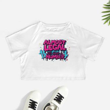 She’s close. She knows it. And she’s not pretending to be shy.This graffiti-tagged crop is soaked in flirty defiance, with bold bubble lettering and a bratty smirk of a message: “Almost Legal — It’s Just a Number.” It’s playful, controversial, and made for girls who love pushing buttons just as much as they love turning…